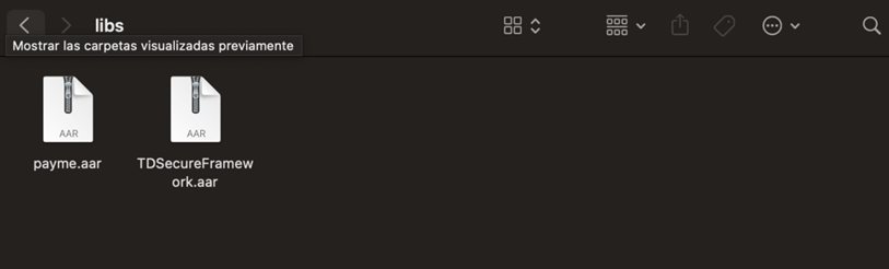 The libraries (Payme, SecureKey3DS, VisaSensoryBranding and MastercardSonic) must be added inside the project. The authentication SDK provided by Alignet must also be added. It is recommended to create a libs folder inside the merchant project, this folder should contain the four SDKs delivered by Alignet.