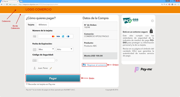 El registro del logo y los cambios de los colores es realizado por el equipo de integraciones de Alignet. Para ello el comercio, siguiendo las consideraciones detalladas en la guía funcional, deberá entregar los siguientes puntos: